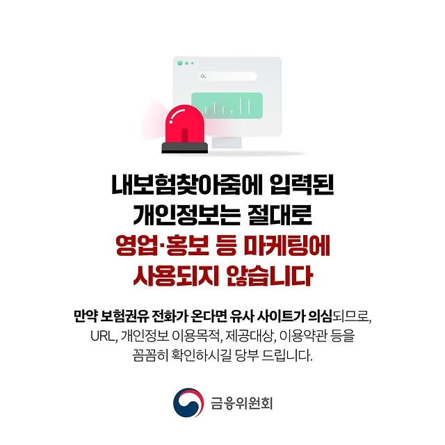 A. 절대 아닙니다. 금융위원회에서 공식적으로 밝힌 바와 같이, '내보험찾아줌'에 입력된 개인정보는 영업, 홍보 등 마케팅 목적으로 절대 사용되지 않습니다. 만약 조회를 했다는 이유로 보험 권유 전화가 온다면, 이는 유사 사이트나 피싱 사기일 가능성이 높으므로 즉시 전화를 끊고 해당 번호를 차단해야 합니다.